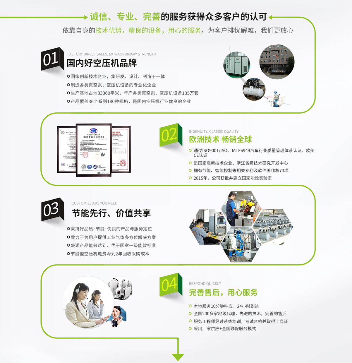 浙江盛源空壓機制造有限公司是一家研究制造無油真空泵系列、新能源電動空壓機、空氣壓縮機設備、器材、永磁伺服電機、工業(yè)投資等多元化經(jīng)營的大型企業(yè),是國家高新技術(shù)企業(yè),浙江省級技術(shù)研究開發(fā)中心。